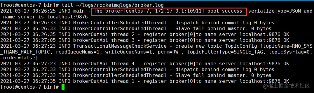 tail -f ~/logs/rocketmqlogs/namesrv.log