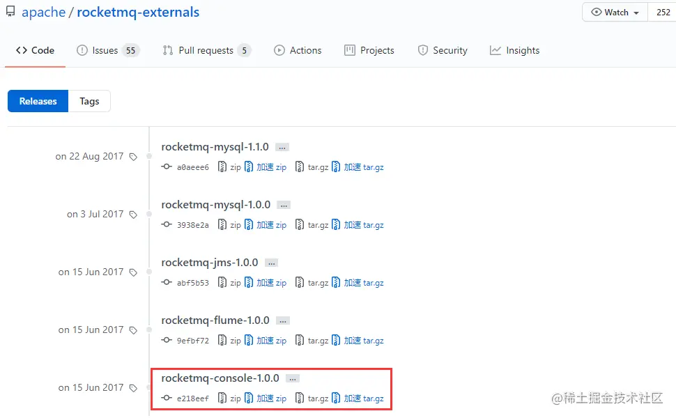 官方还为我们提供了一个可视化的操作页面,能够轻松监控消息的生产消费等等功能,我们只需将其项目下载下来然后运行即可,来到项目地址 github.com/apache/rock… :