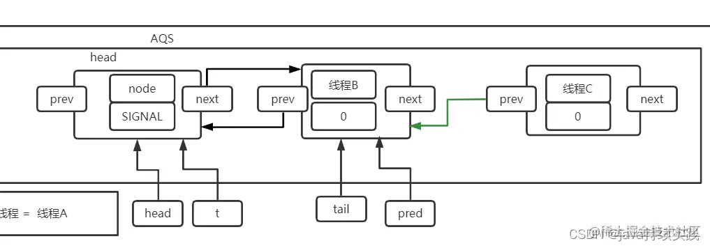 即把第三个线程的node的prev指向第二个线程的node对象.