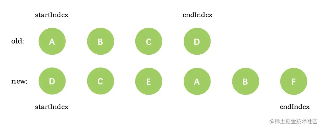 6.1 `oldEndIndex` < `oldStartIndex` 判断新列表是否还有节点,有的话则按位置插入节点就行。