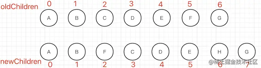 通过 newIndexToOldIndexMap 拿到oldChildren 中对应的 index [5, 2, 3, 4, -1](-1表示没有,要新增)