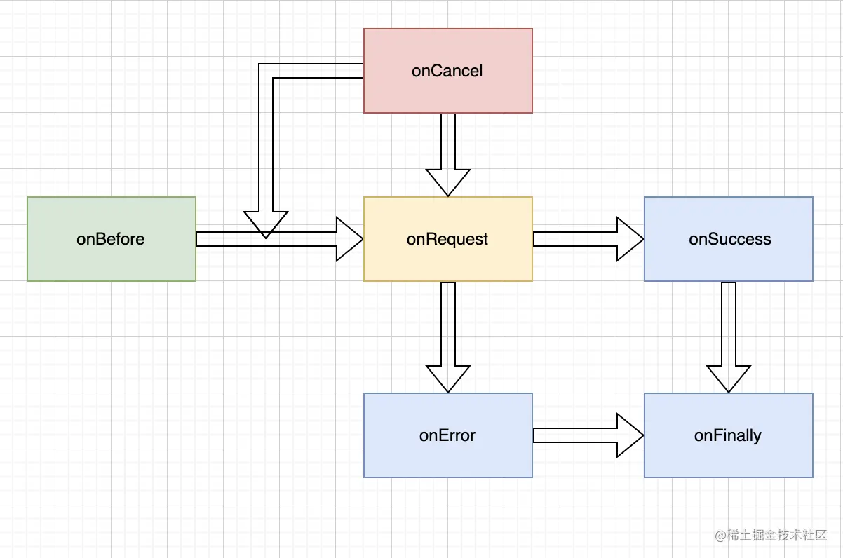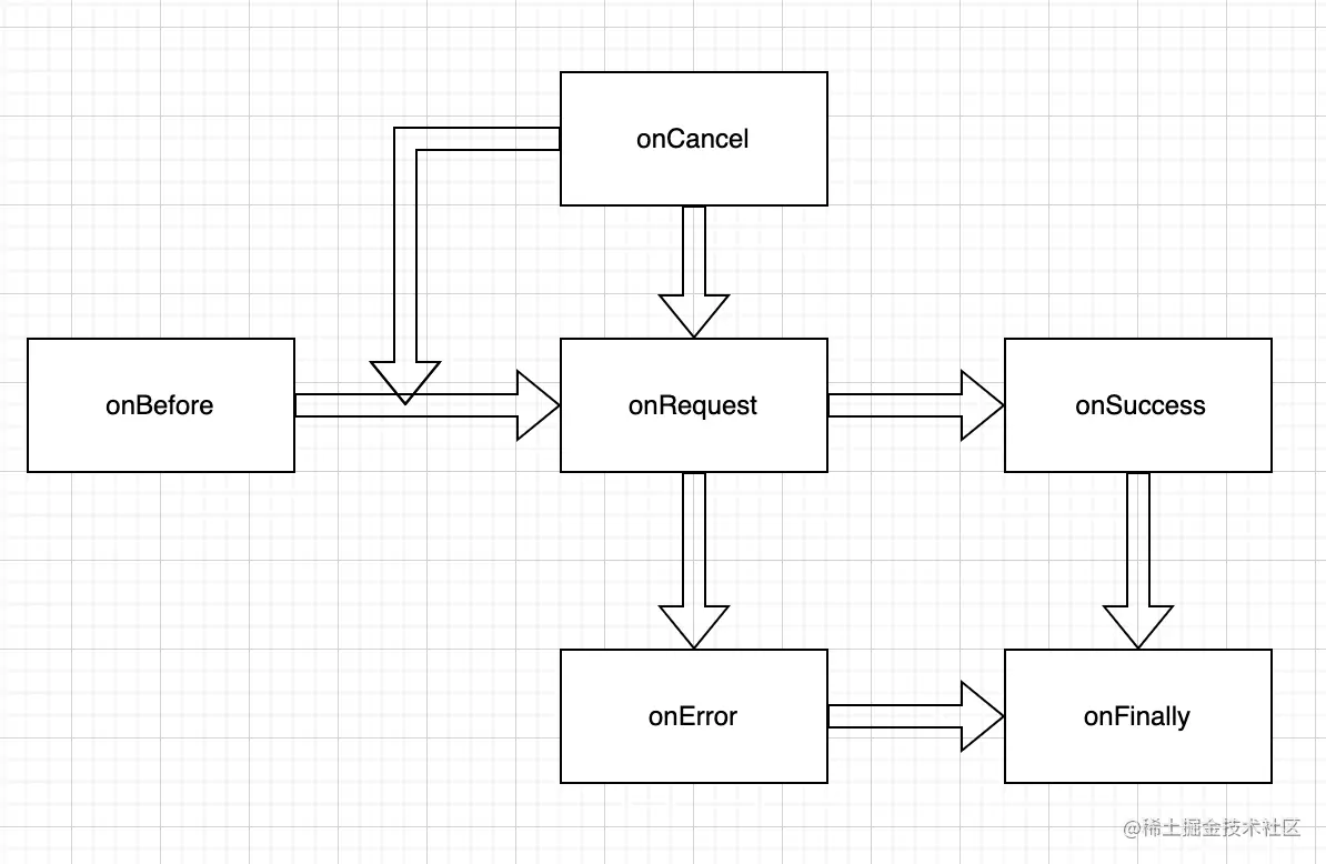 除了最后一个 onMutate 之外,可以看到返回的方法都是在一个请求的生命周期中的。一个请求从开始到结束,如下图所示: