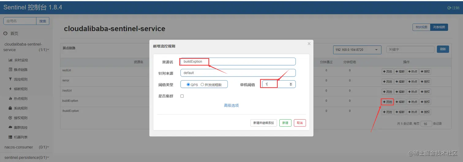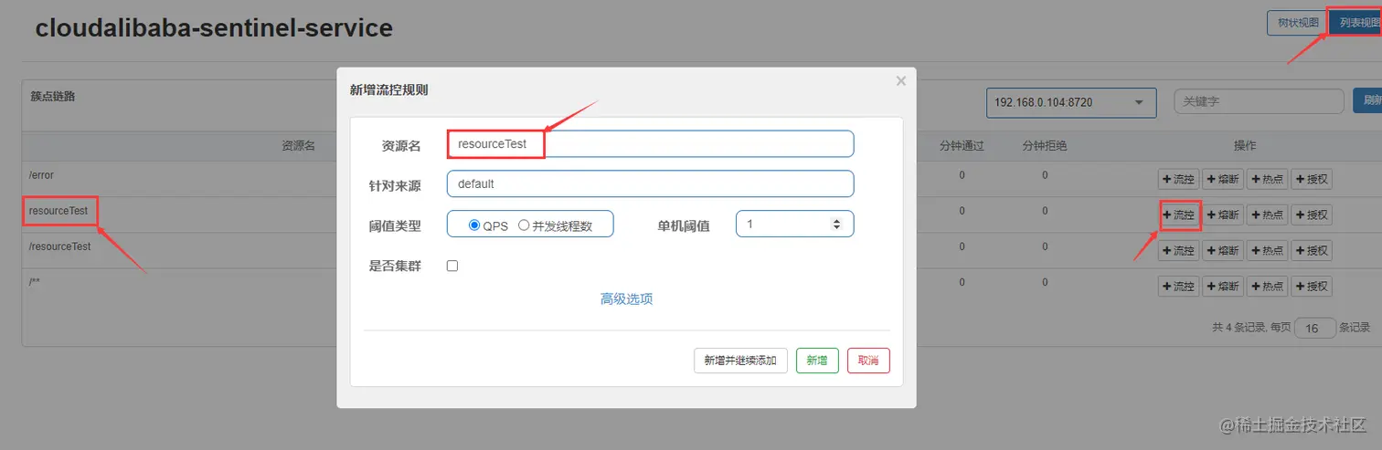 先访问http://localhost:8006/resourceTest,在添加流控规则