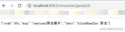 现在当我们去访问设置了 fallback属性的时http://localhost:8083/consumer/goods/6 会出现我们设置的参数。