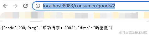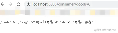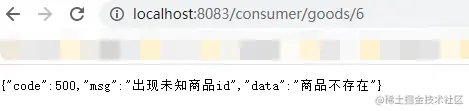 启动项目,当我们再去访问http://localhost:8083/consumer/goods/6的时候,出现原有异常。