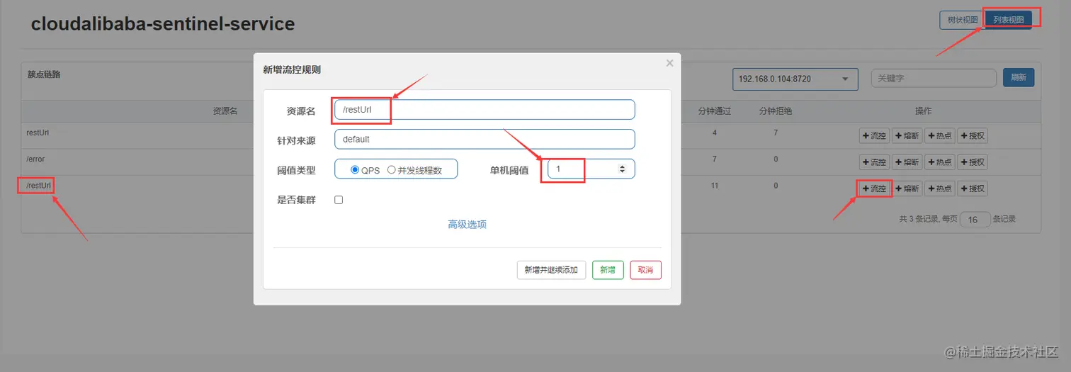 先访问http://localhost:8006/restUrl,在添加流控规则