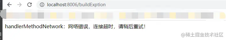 如果我们想要体现,网络异常的操作,我们只需要替换blockHandler中的handlerMethodError改为handlerMethodNetwork,重启项目后,重复上面的步骤,再来看一下,就会出现下面的提示: