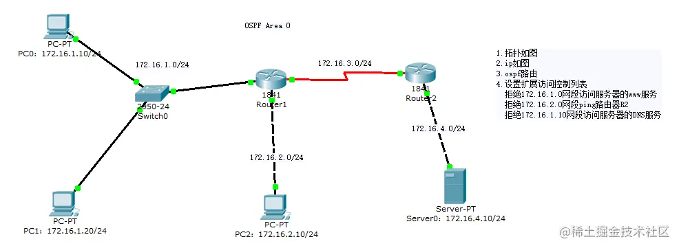 拒绝172.16.2.0网段ping路由器R2:R2