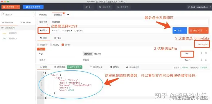使用apipost可以方便的模拟Post上传,详细介绍如下