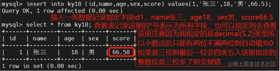 insert into ky18 (id,name,age,sex,score) values(1,'张三',18,'男',66.5);