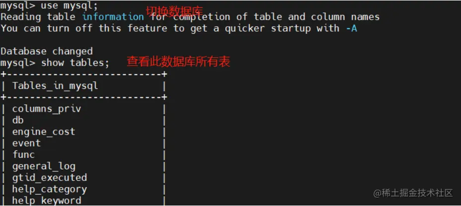 SHOW TABLES FROM 数据库名;