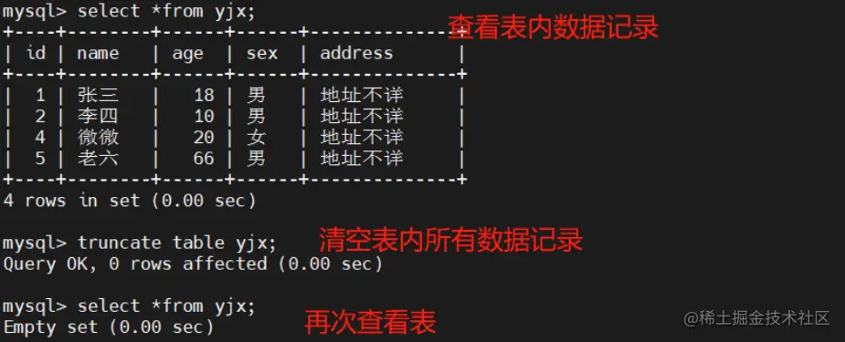 清空表——删除表内的所有数据