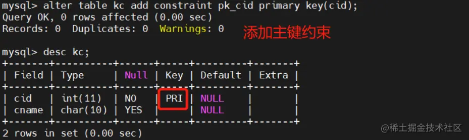 指定字段为主键