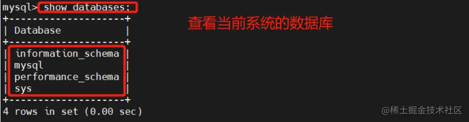 SHOW DATABASES;
