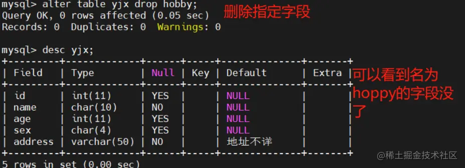 ALTER TABLE 表名 drop 字段名;