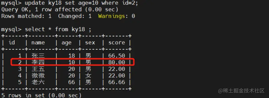#这里注意使用的时候一定要加where语句去匹配条件不然会修改指定字段的所有内容