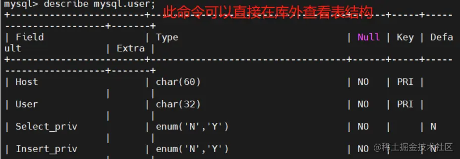 查看表的结构