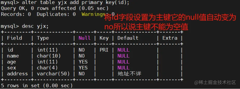 #设置为主键后字段的值得是唯一