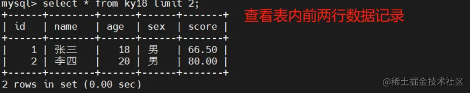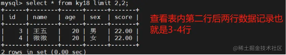 select * from 表明 limit n,m; #表示查看n行后的m行数据记录