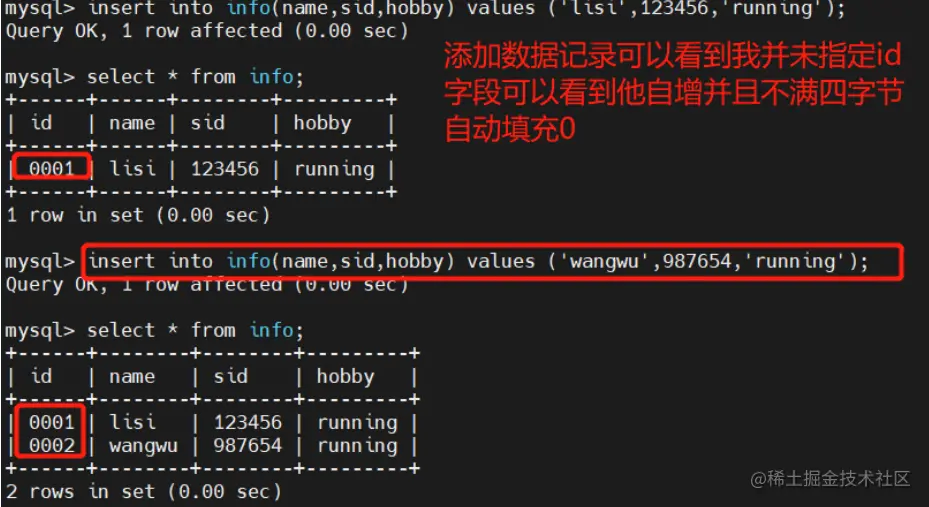 id int(4) zerofill primary key auto_increment,