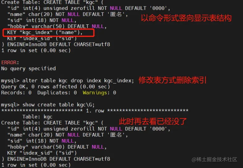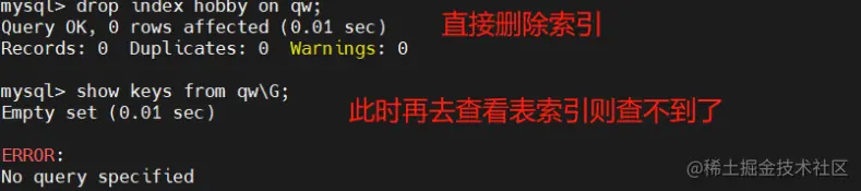 ALTER TABLE 表名 DROP INDEX 索引名;