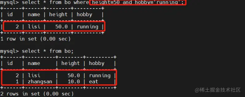 select * from 表名 where 字段1=值 and 字段2=值 and ....;