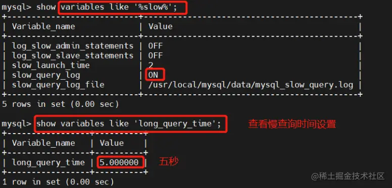 #查看慢查询时间设置