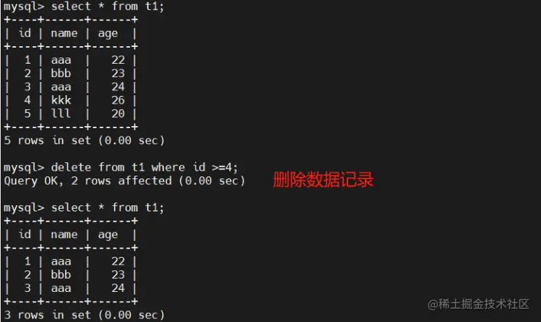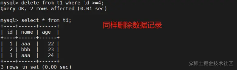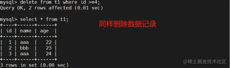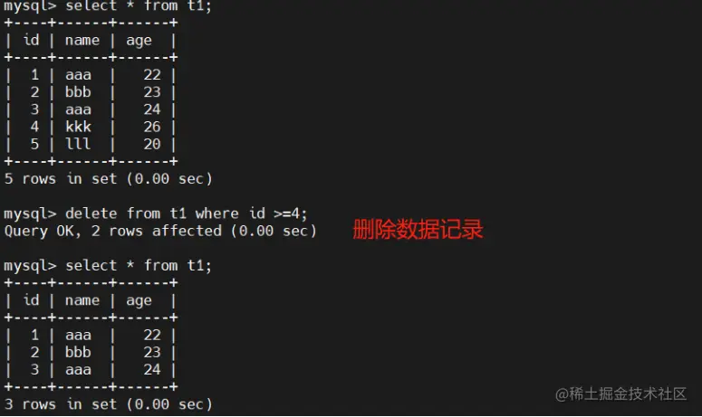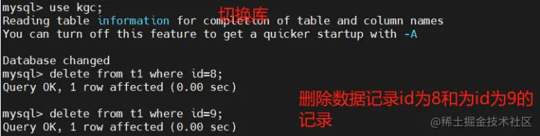 delete from t1 where id=9;