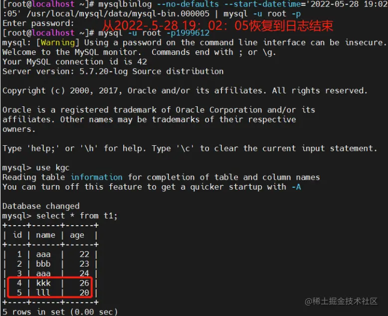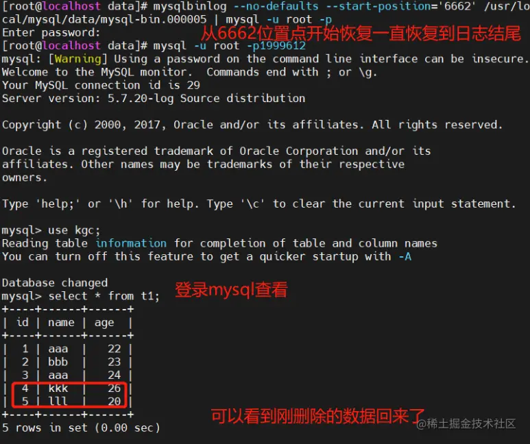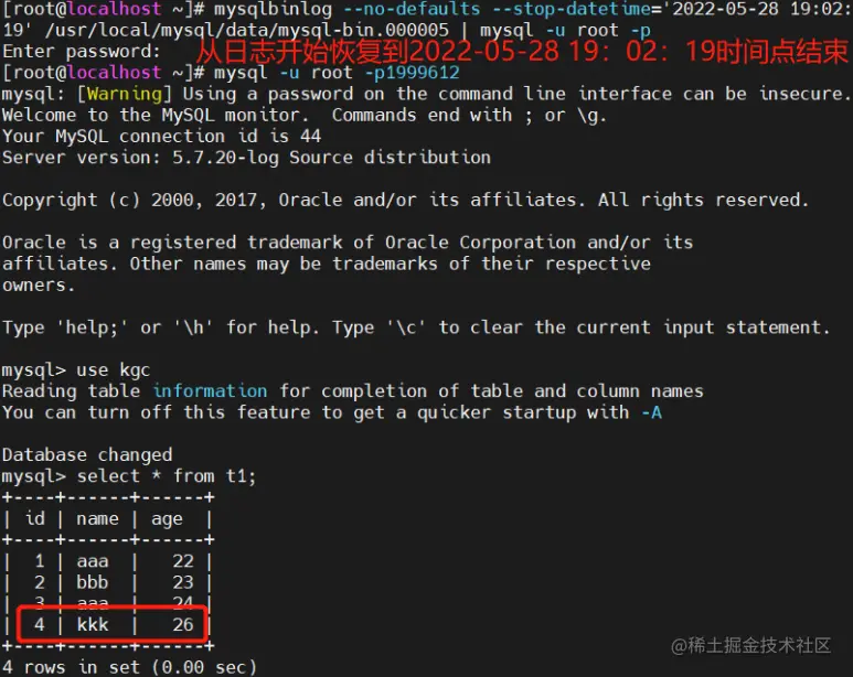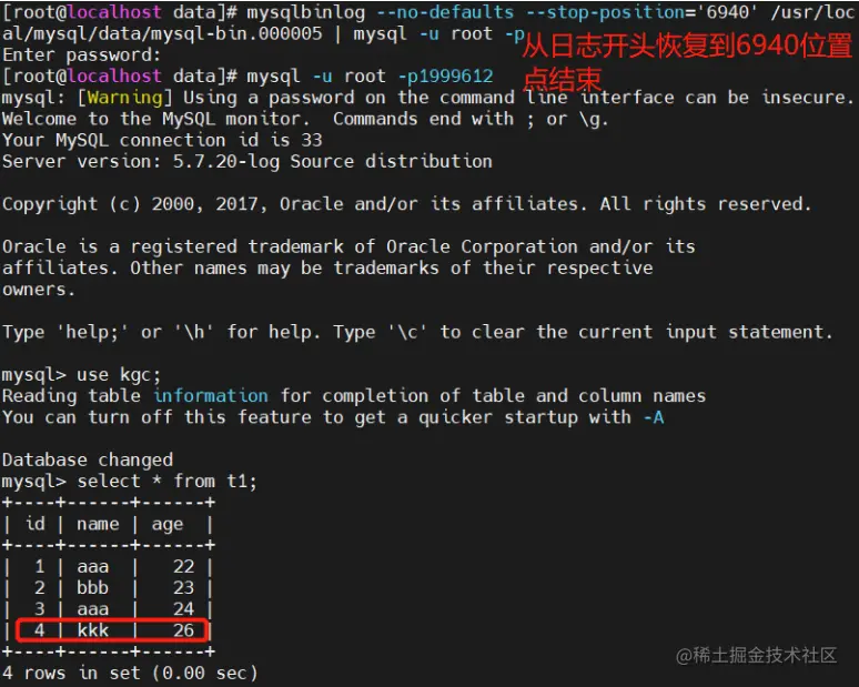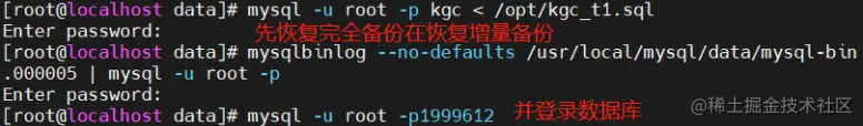 - 将所有备份的二进制日志内容全部恢复