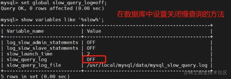 #在数据库中设置关闭慢查询的方法