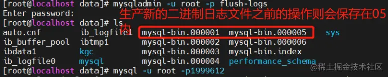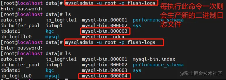 5.再次生成新的二进制日志文件(例如mysql-bin.000005)