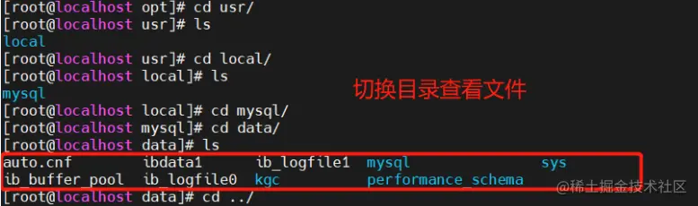 cd /usr/local/mysql/data/ #切换目录查看