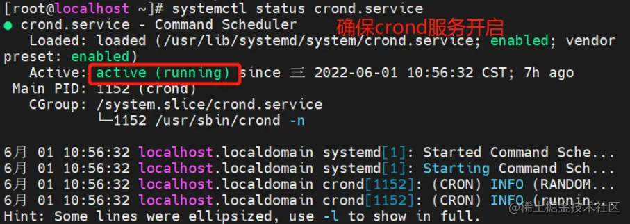 systemctl status crond.service #查看服务是否开启
