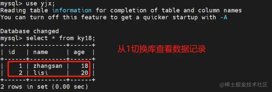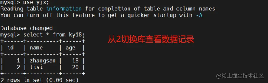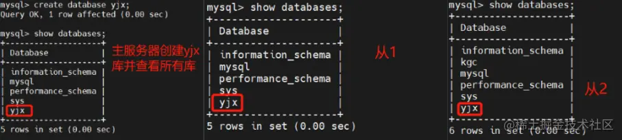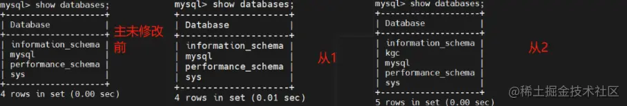 分别在两台从服务器创建不同的数据记录