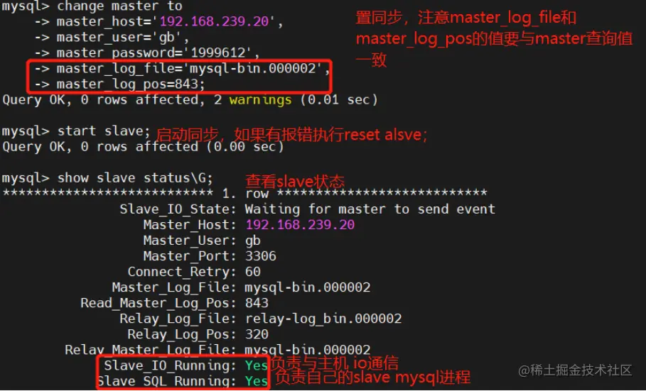 start slave; #启动同步,如果有报错执行reset alsve;