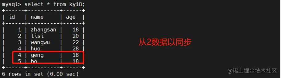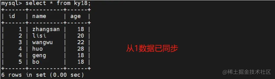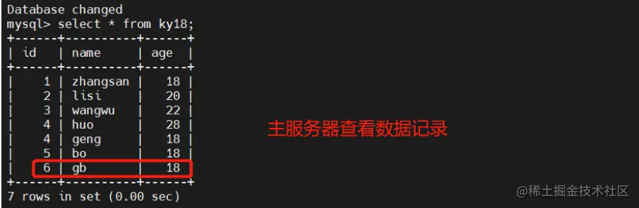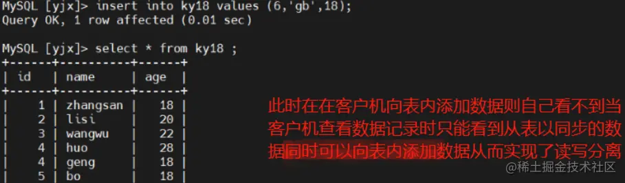 此时在客户机插入数据只有主可以看到数据