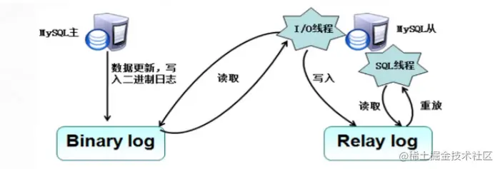 - 同时主节点为每个I/o线程启动一个dump线程,用于向其发送二进制事件,从节点会将其保存至s从节点本地的中继日志(Relaylog)中