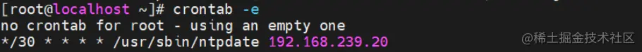 */30 * * * * /usr/sbin/ntpdate 192.168.239.20 #没三十分组同步一次时间