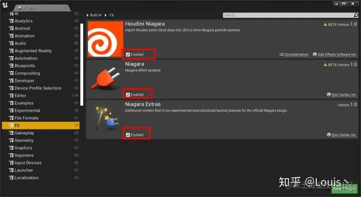 这里我们使用的是 4.21 版本【我会将 UE 5.0+ 的变化进行标注】, 首先打开我们的编辑器,将插件启用,并且重新启动工程.
