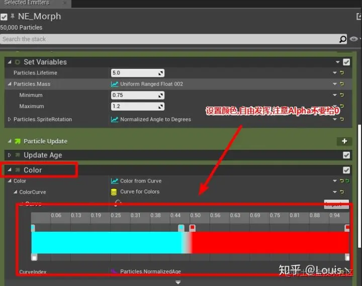 给我们粒子一个固定的生存周期, 设置 Partical Spawn 模块下 Set Variables>Particles.Lifetime【UE 5.0+ 改为了 Set Parameters 】,点击右面的黄色勾勾的图标, 将值设置为 5.