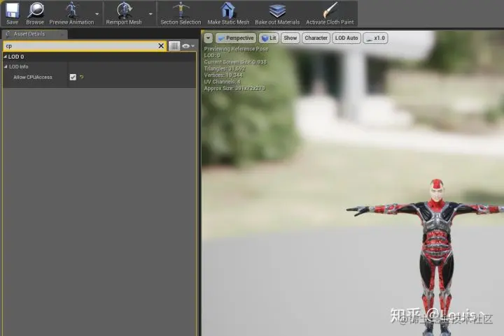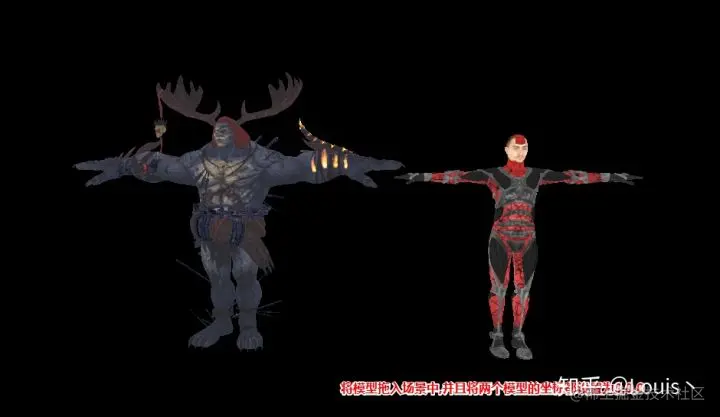 来到视口,将我们喜欢的两个骨骼模型拖入场景中,并将两个模型的世界坐标都设置为 (0,0,0). 之后需要将骨骼模型的 Allow CPUAccess 打开,这样我们才能在粒子系统中用该模型