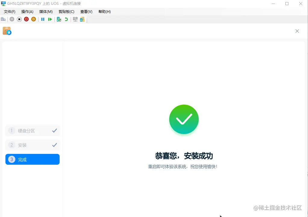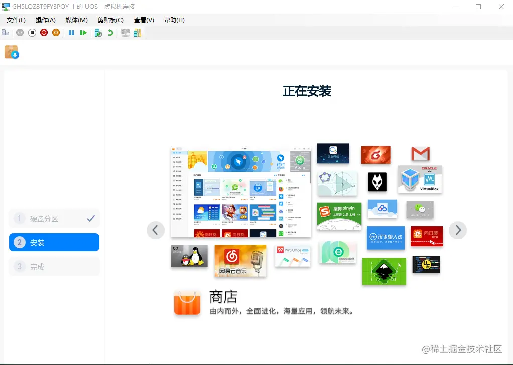 然后再次点击启动按钮就可以正常进入UOS操作系统的安装界面了。 UOS操作系统的安装效果如下图