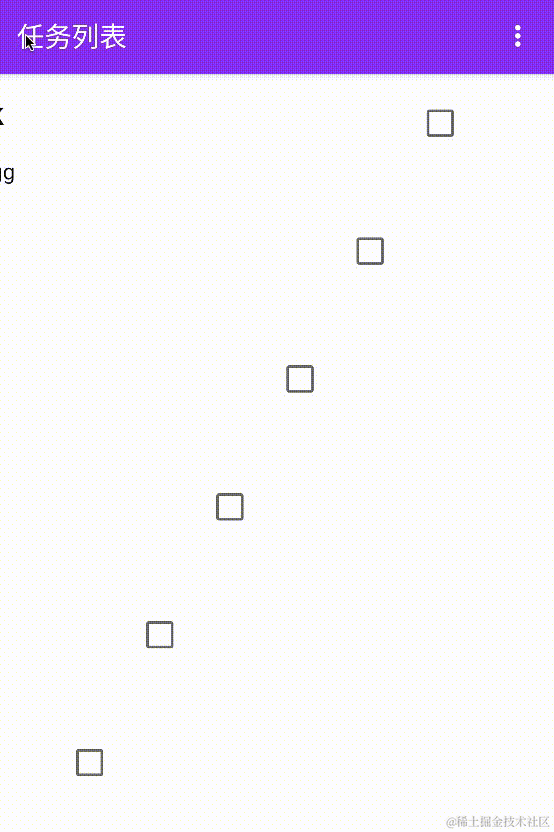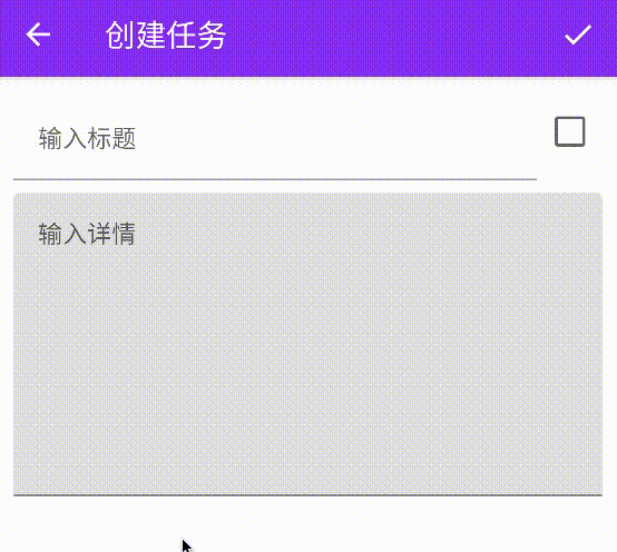 详情页,这个页面反而没什么特殊东西,就是两个输入框,分别是:任务标题、任务详情,还有一个 CheckBox,代表任务是否已经完成。