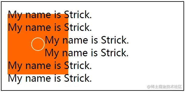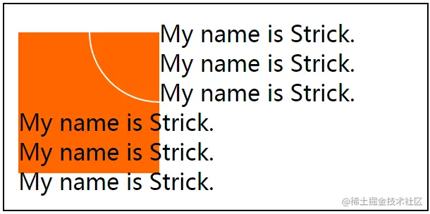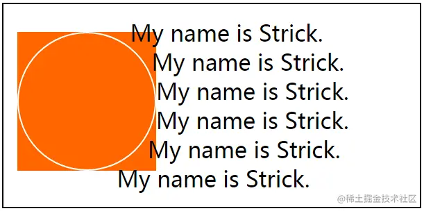 第一种是圆形,可定义半径和圆点位置,例如浮动元素的宽高都为100px,圆的半径为50px,样式如下所示,效果如下图所示,其中白色边框的圆就是计算出的浮动形状。
