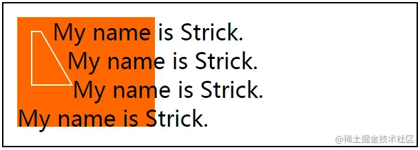 shape-outside: polygon(10% 12.5%, 20% 12.5%, 40% 62.5%, 10% 62.5%);