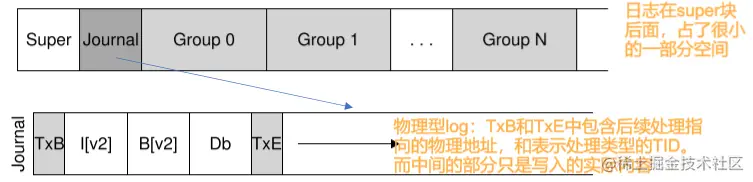 - 日志元数据写入:将开始块和元数据写入日志块,系统等待写入完成;