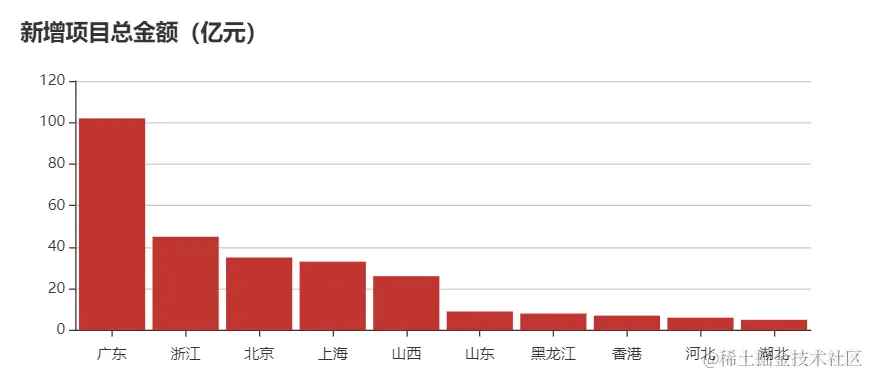 本周新增项目金额地区TOP10:广东、浙江、北京、上海、山西、山东、黑龙江、香港、河北、湖北