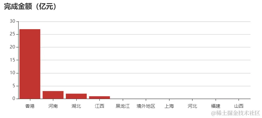 本周项目量完成金额地区TOP10:香港、河南、湖北、江西、黑龙江、境外地区、上海、河北、福建、山西
