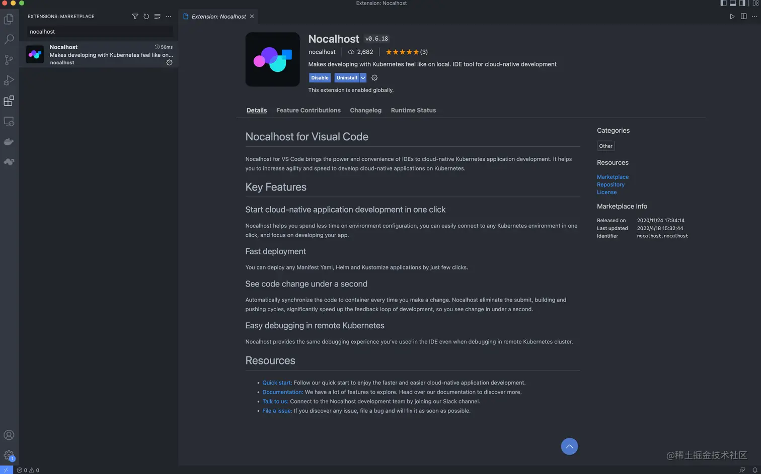 Nocalhost 支持 VScode JetBrains ,这里我们主要介绍 VScode 插件安装参考官网文档。