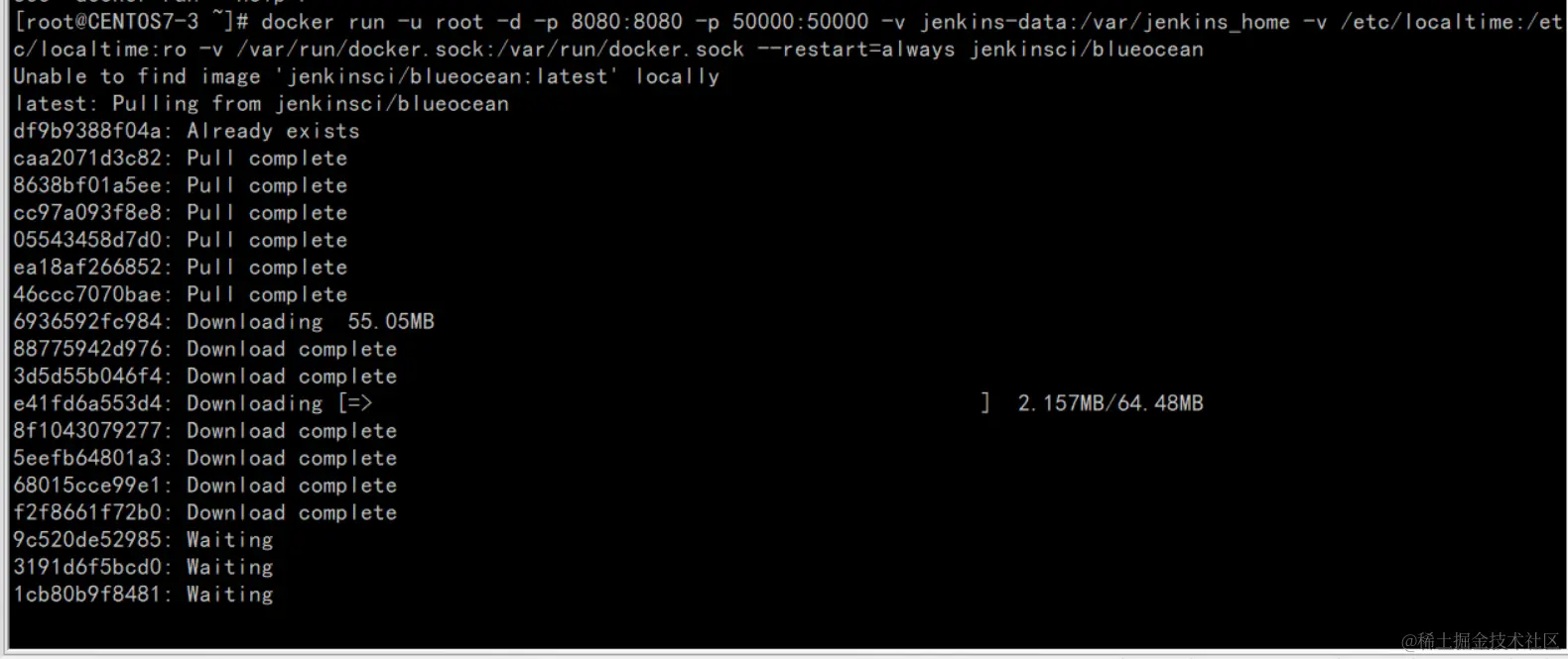 #/var/run/docker.sock 表示 Docker 守护程序通过其监听的基于 Unix 的套接字。 该映射允许jenkinsci/blueocean 容器与 Docker 守护进程通信, 如果 jenkinsci/blueocean 容器需要实例化其他Docker 容器,则该守护进程是必需的。 如果运行声明式管道,其语法包含 agent 部分用 docker ;例如, agent { docker { ... } } 此选项是必需的。